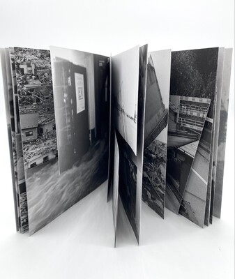 "My edition echoes its subject matter: I constructed it by cutting up and rebinding commercially-printed books of my photos and then titling them with rubber stamps." — Sara L. Press